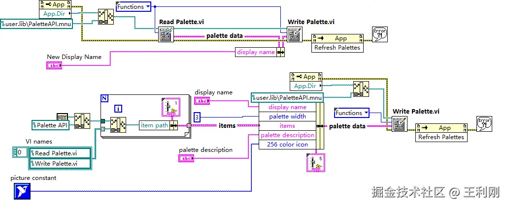 - VI names:包含Read Palette.vi和Write Palette.vi的路径,用于关联调色板中的功能项。