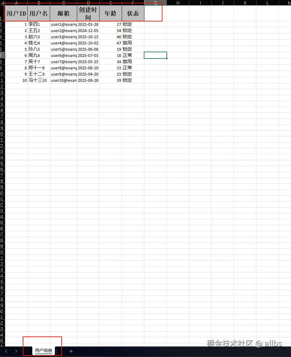 sheetName = "用户信息",