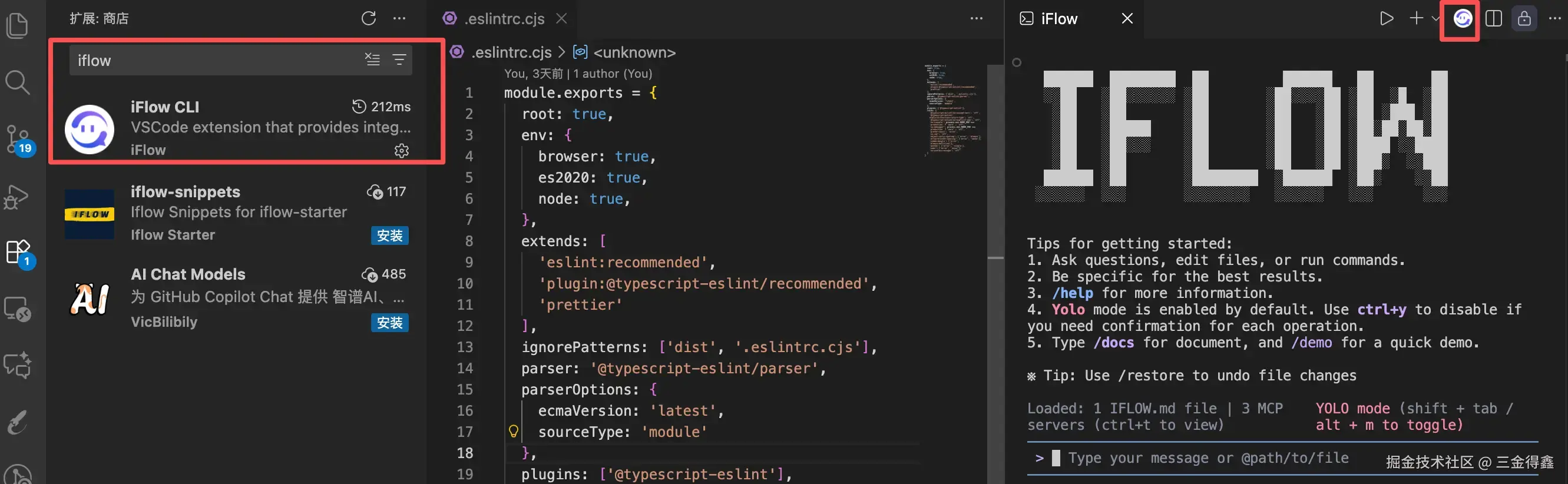 我们可以在 VSCode 编辑器中安装 IFlow CLI 插件来快速在项目中启动: