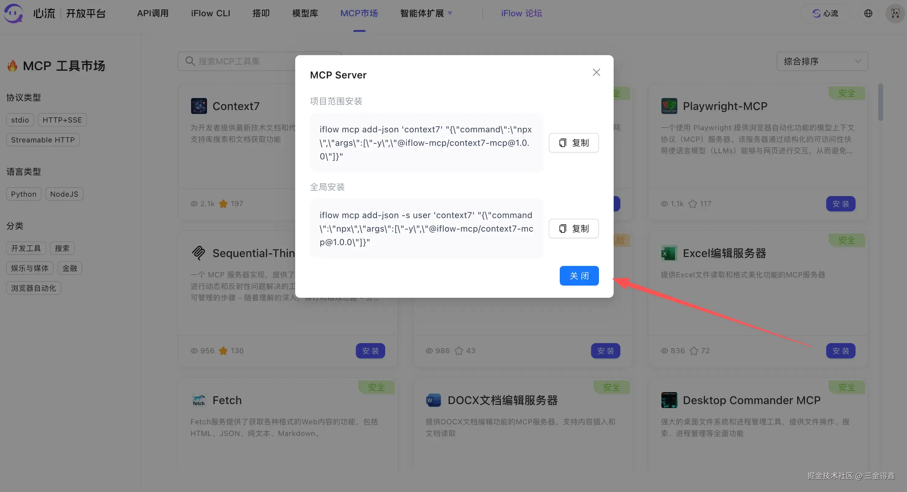 - MCP 市场(platform.iflow.cn/mcp),提供了一系列… MCP 工具,大家可以根据引导提示一键进行安装;