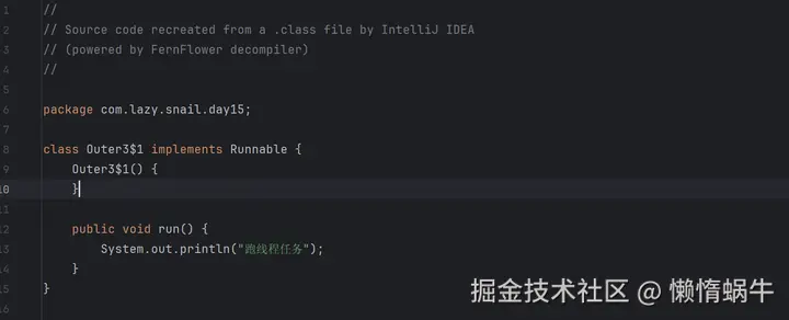 在编译后的字节码文件中,会出现Outer3$1.class文件,该文件反编译后: