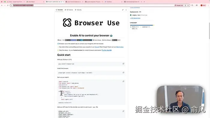 解决方案的核心是 browser-use,这是一个 Python 库,使 AI 代理能控制网页浏览器,是将人类语言转化为机器动作的引擎。