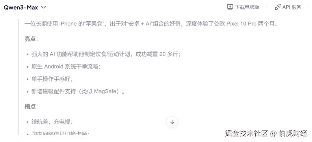 不过,千问团队表示目前并不考虑收费,对于所有人工智能助手都无法回避的商业化问题,阿里也有自己的答案。