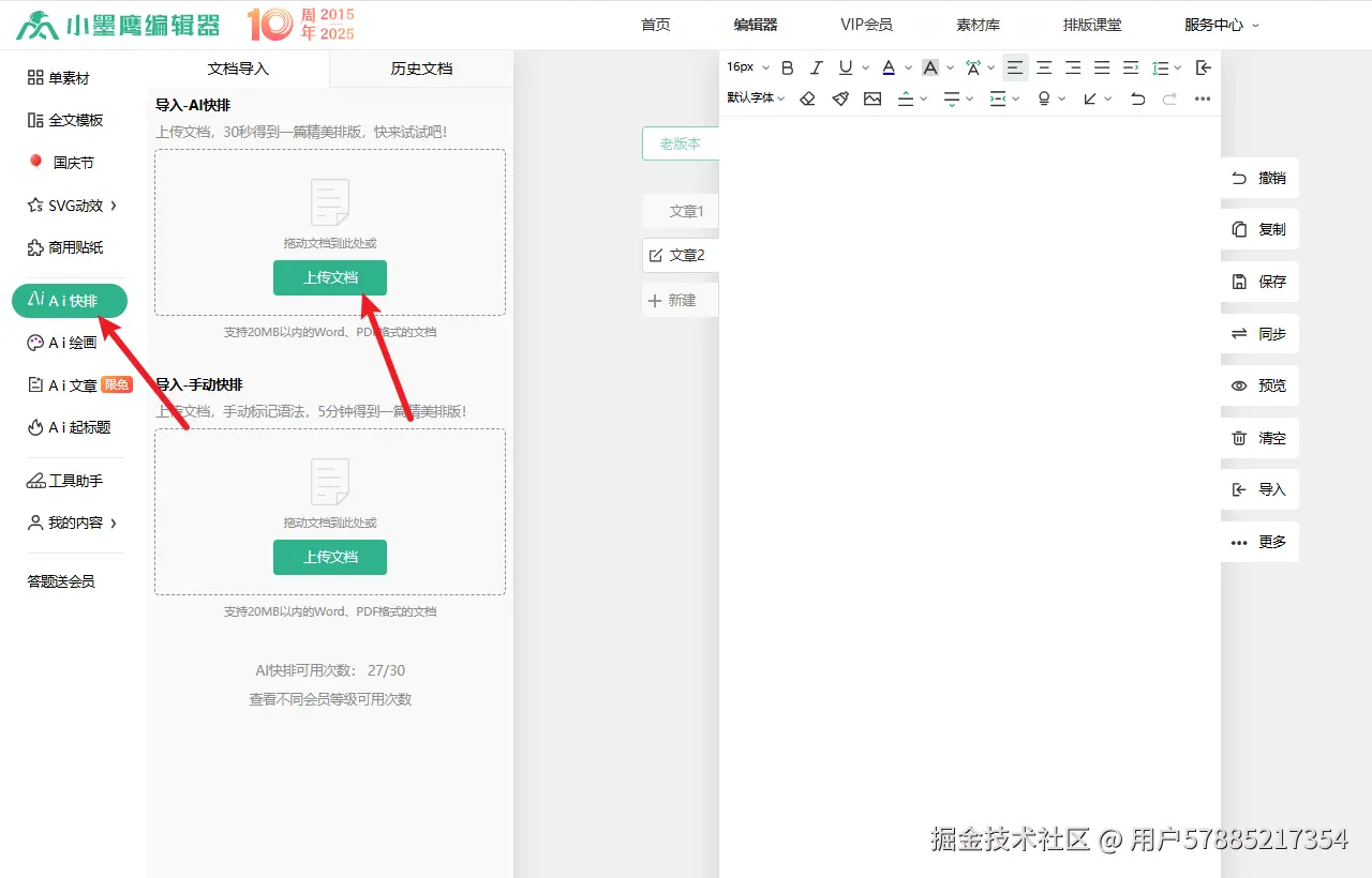 AI快排功能:它的「AI快排」功能我真的超喜欢,简直是懒人的福音!你把文章内容导入进去,大概30秒左右,它就能根据你的文章结构,自动匹配一个特别合适的排版样式。识别得还挺准的,排出来的效果也很精致,效率一下子就提上去了。