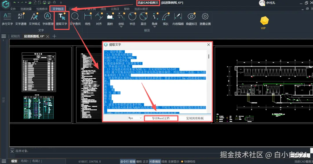 浩辰CAD看图王电脑版的「提取文字导出Word」功能,能够一键识别并提取DWG/DXF图纸中的所有文字信息(如图纸说明、技术要求、材料清单等),并直接导出为可编辑的Word文档。