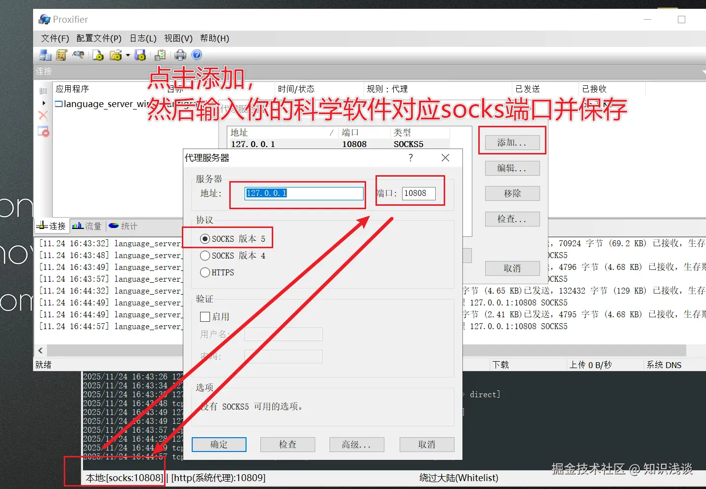 然后输入你的科学软件对应socks端口并保存