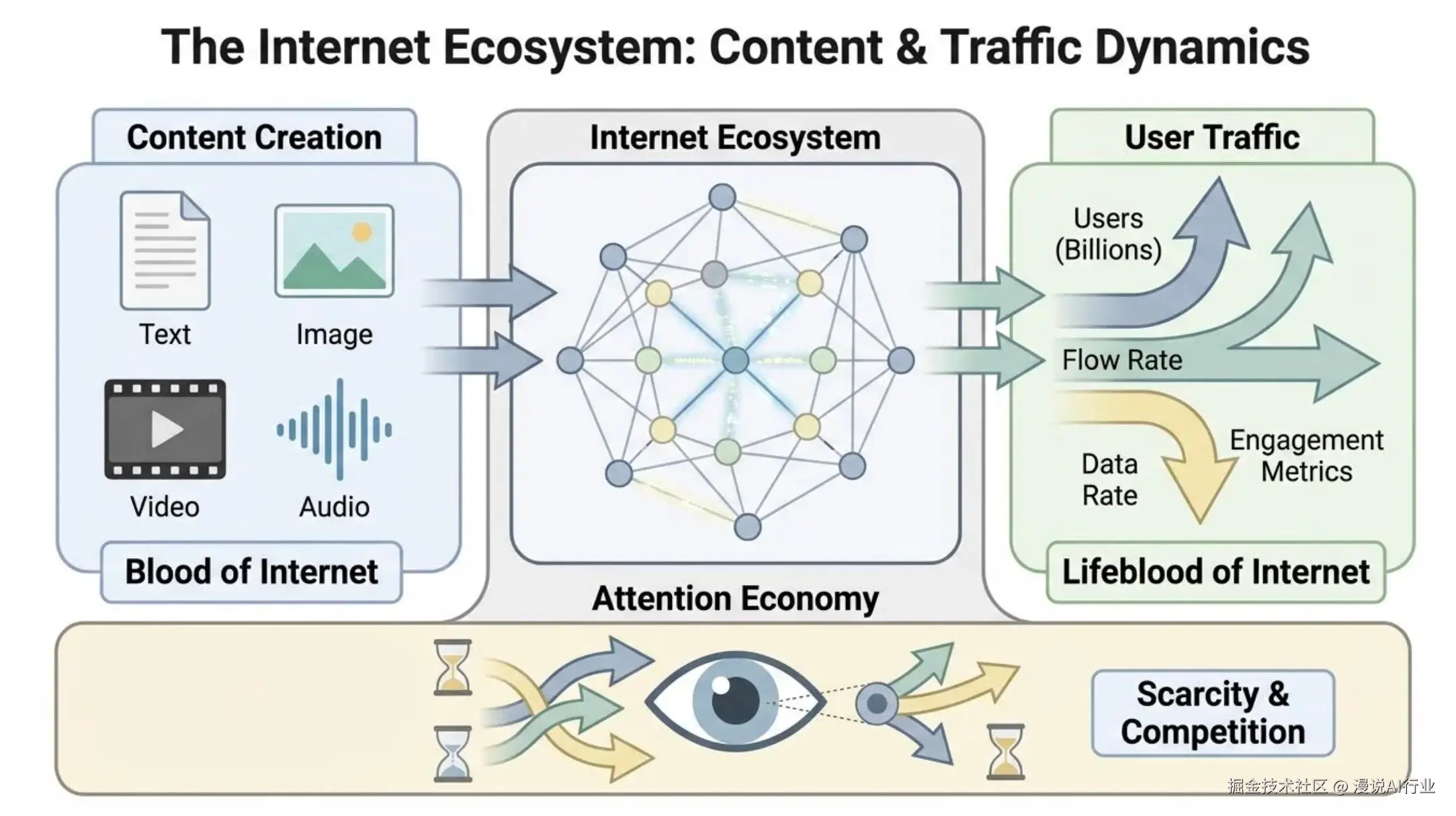内容是互联网的血液,而流量则是互联网的生命线。在注意力稀缺的时代,高质量、高频率、个性化的内容是吸引和留住用户的关键。AIGC(AI-Generated Content),在大模型的驱动下,正以前所未有的规模和效率重塑内容生产的全链条。