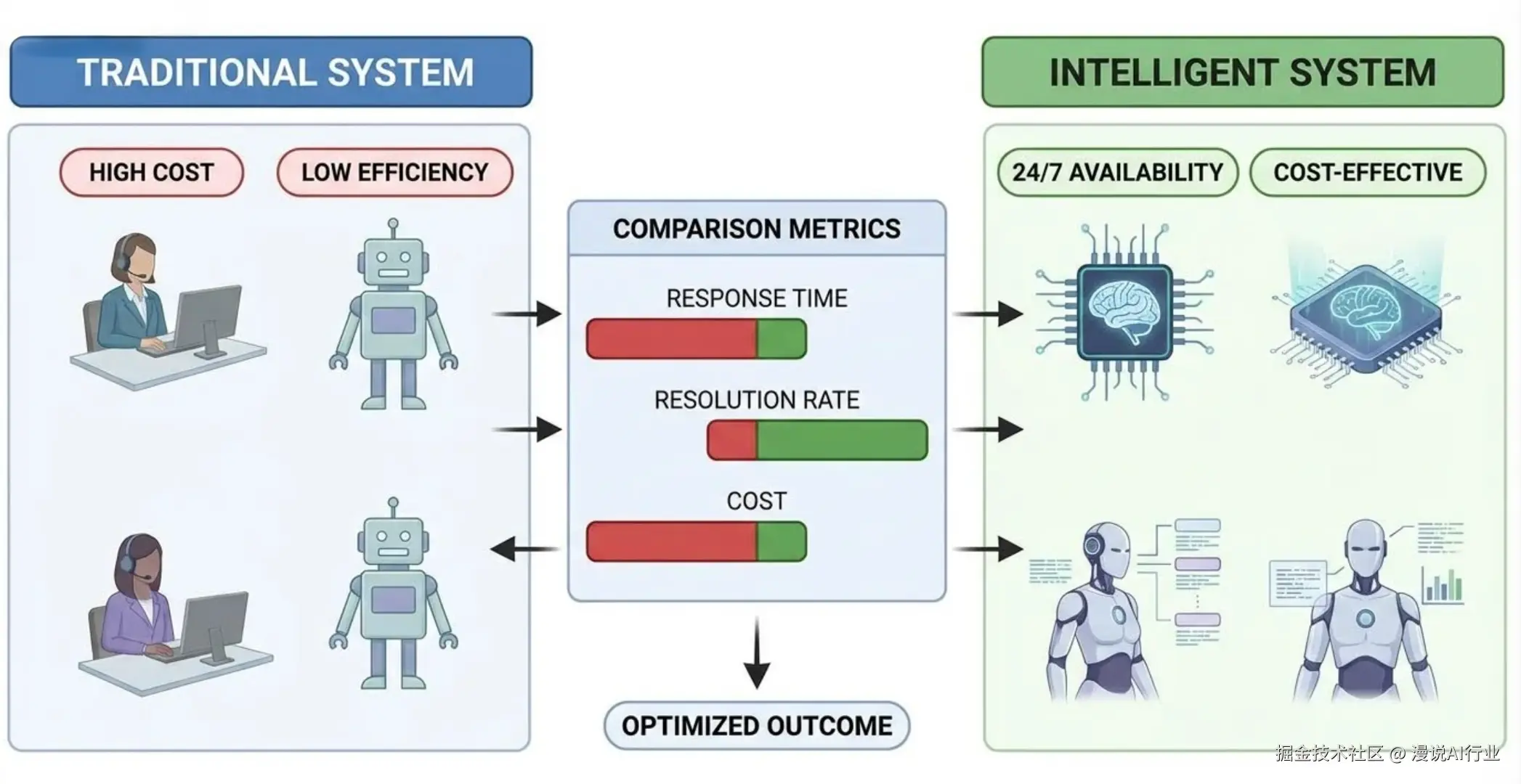 如今,无论是大型电商平台处理退换货咨询,还是社交媒体应对账号安全问题,大模型驱动的智能客服都能以极低的边际成本,7x24小时不间断地处理海量用户请求,将人工客服从重复性劳动中解放出来,专注于处理更复杂、更需要情感介入的特殊案例,从而实现客服部门的成本降低与服务质量提升的双赢。