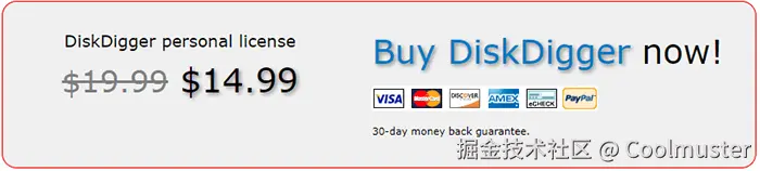 DiskDigger 提供两个版本:免费版和专业版。免费版仅支持恢复照片和视频,且仅适用于Android设备。如果用户需要恢复其他类型的数据或在Windows系统上使用,则需要购买专业版。专业版售价为每台设备 14.99 美元,提供更广泛的数据恢复功能和更深入的扫描模式。