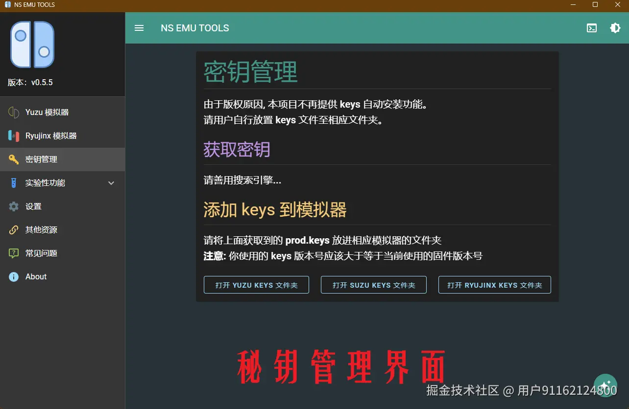 配置密钥:这是最关键的一步。由于版权原因,密钥文件需要你自行通过搜索引擎寻找。找到后,使用工具的“密钥管理”功能,将文件(如prod.keys)放入模拟器指定的密钥文件夹。