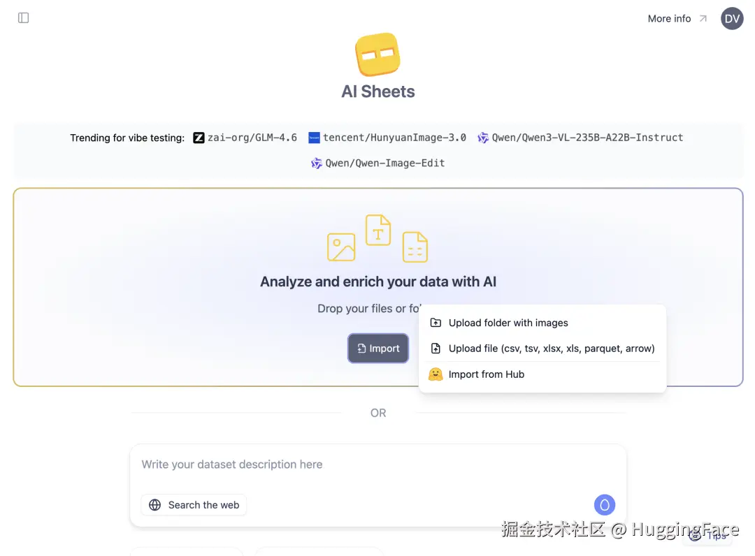 我们非常高兴地发布 Hugging Face AI Sheets 的重大更新版——这是一款可通过开放 AI 模型构建、转换与丰富数据的开源工具。AI Sheets 基于 Inference Providers 运行,意味着你可以使用由全球顶级推理服务驱动的数千种开放模型。