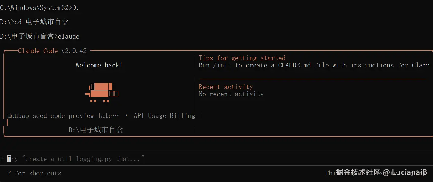 可以看到如图所示成功启动并使用Doubao-Seed-Code模型, 兼容了原本的 Anthropic API,对于使用Claude Code的开发者,几乎零成本 将 API 切换到 Doubao-Seed-Code,完全无缝,像换了“引擎”,但方向盘还是原来的。