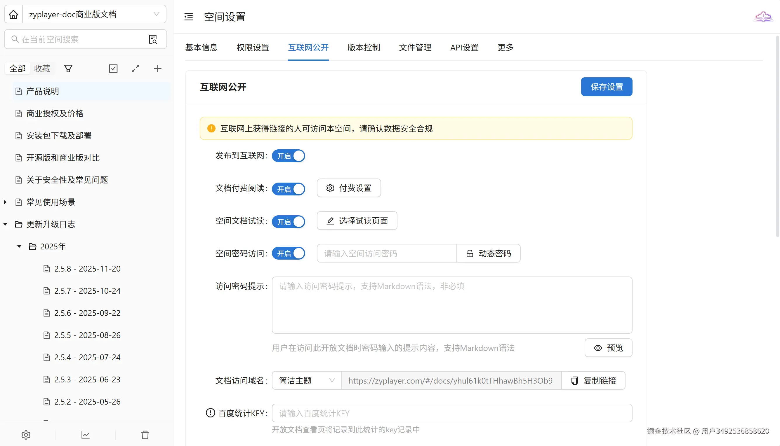 - 多方式公开设置:支持单文档、目录、空间、文集等公开方式,适配不同传播需求。如产品宣传资料设单文档公开供客户访问,技术博客以文集形式公开方便系列浏览。