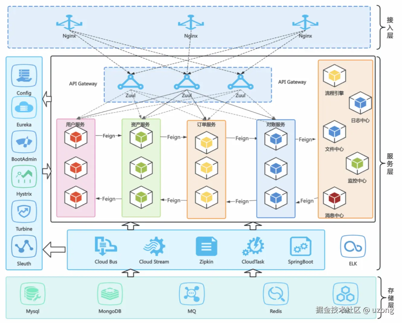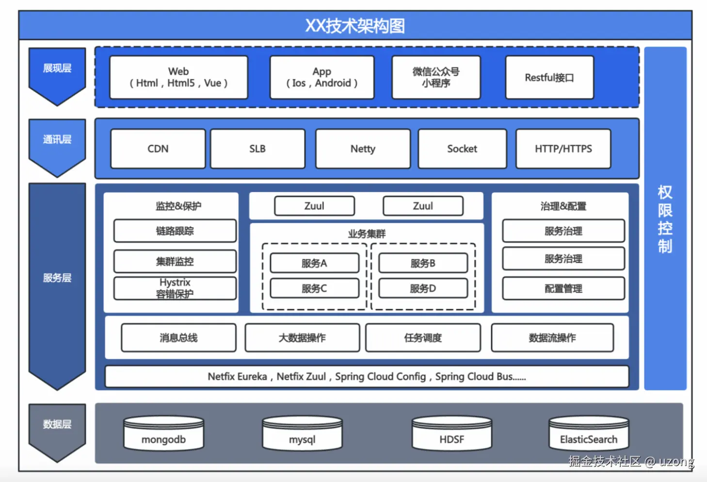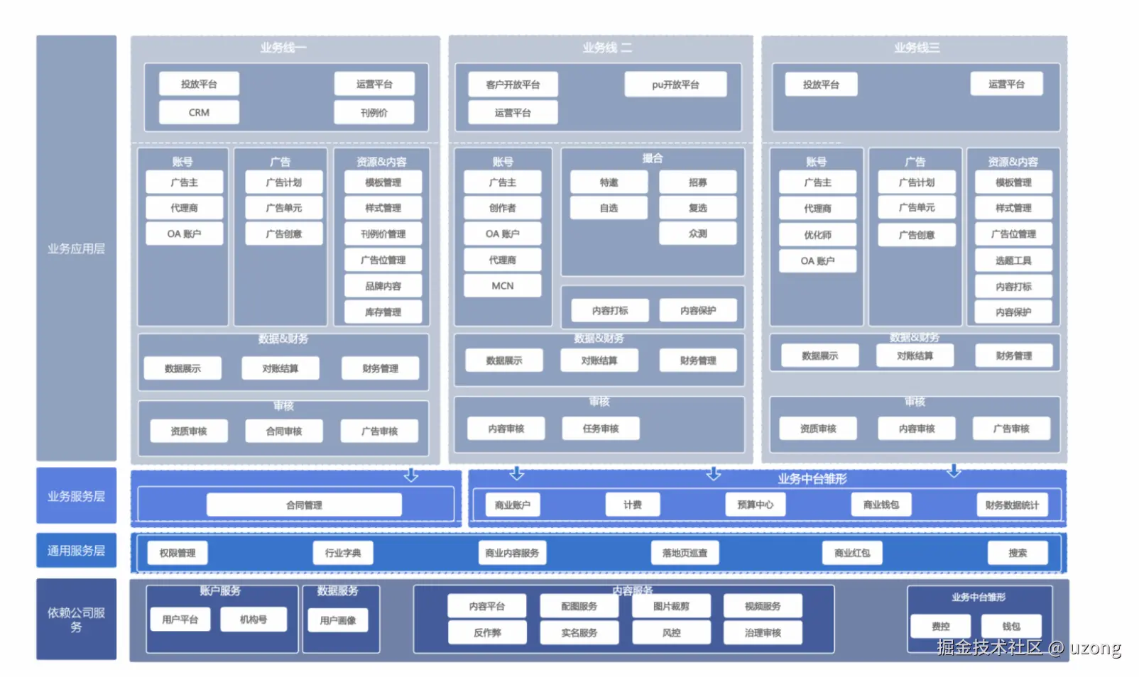 服务层:实现具体业务逻辑,通常由多个服务或微服务组成。