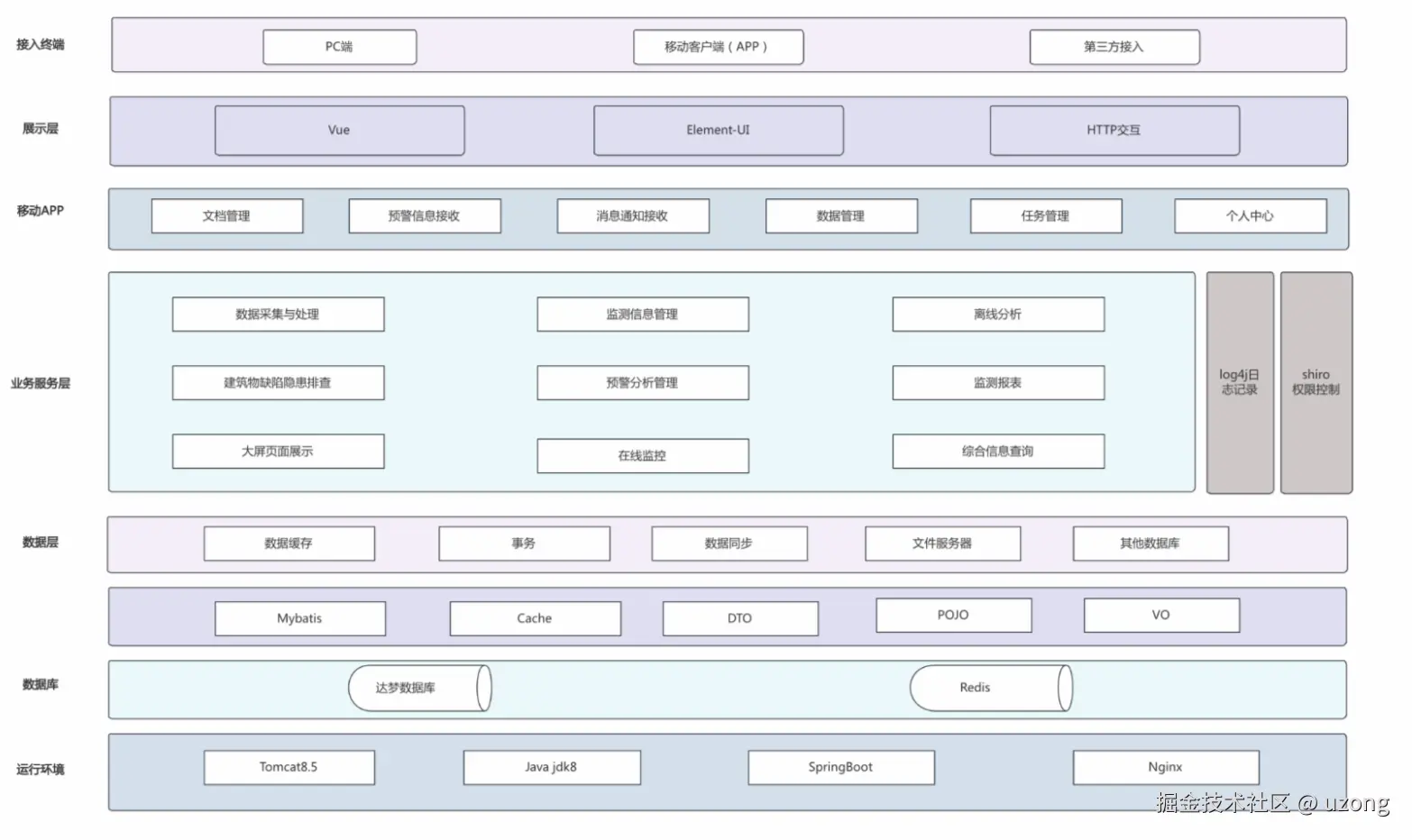 安全层:保障系统各个模块的访问控制和数据安全。