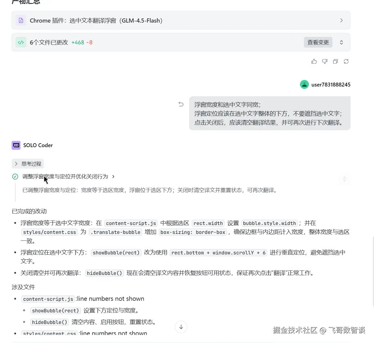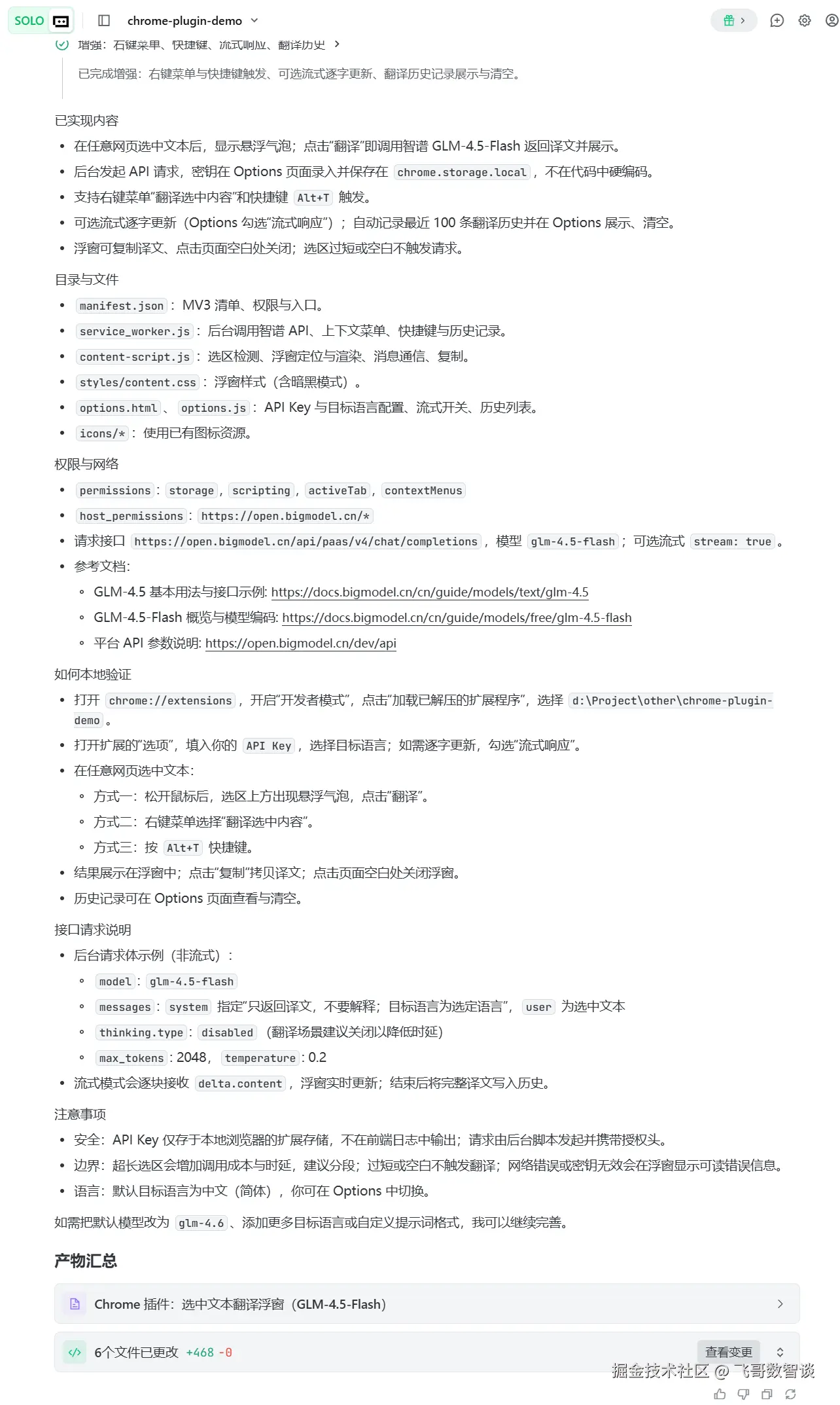 今天实现这个插件,一共花费了 1 小时 40 分钟左右,这还包含了采用 SOLO Builder 智能体未成功的时间。