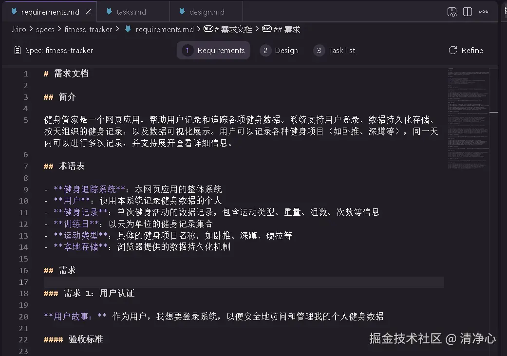 Spec 模式下,Kiro侧重于详细的推理和规划也即进入详细的设计阶段: