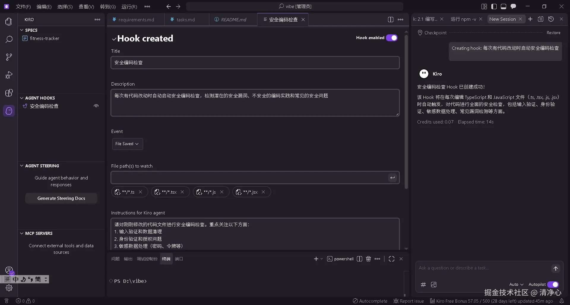 一个智能事件触发器。当某些事件发生,Hooks 就会根据你设定的规则自动调用Agent执行后续流程。比如可以配置保存时自动格式化、运行测试、扫描漏洞,或新建文件时自动生成代码模板。