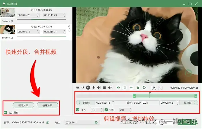 步骤3:录制结束后点击停止按钮,可以直接进入 “高级剪辑” 界面。除了基础的裁剪、拼接操作,这里还内置了丰富的动态转场特效,用户可以根据需求自由选用。