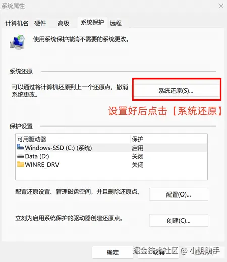 在Windows电脑系统中,电脑文件误删恢复的小工具有哪些呢?小编可能会向大家推荐【创建还原点】这个功能。电脑上不小心永久删除了怎么恢复?该功能需要结合【系统保护】功能一并使用哦。