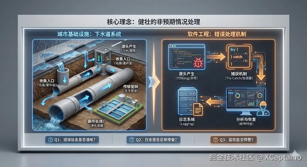 - 有下水道(错误处理、日志、监控)