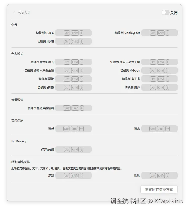 一键切换显示器预设模式:通过这个应用直接在电脑上点一下,就能秒切编程模式、阅读模式、低蓝光、sRGB、P3 等十几个专业模式,比在显示器按键上翻菜单快十倍。