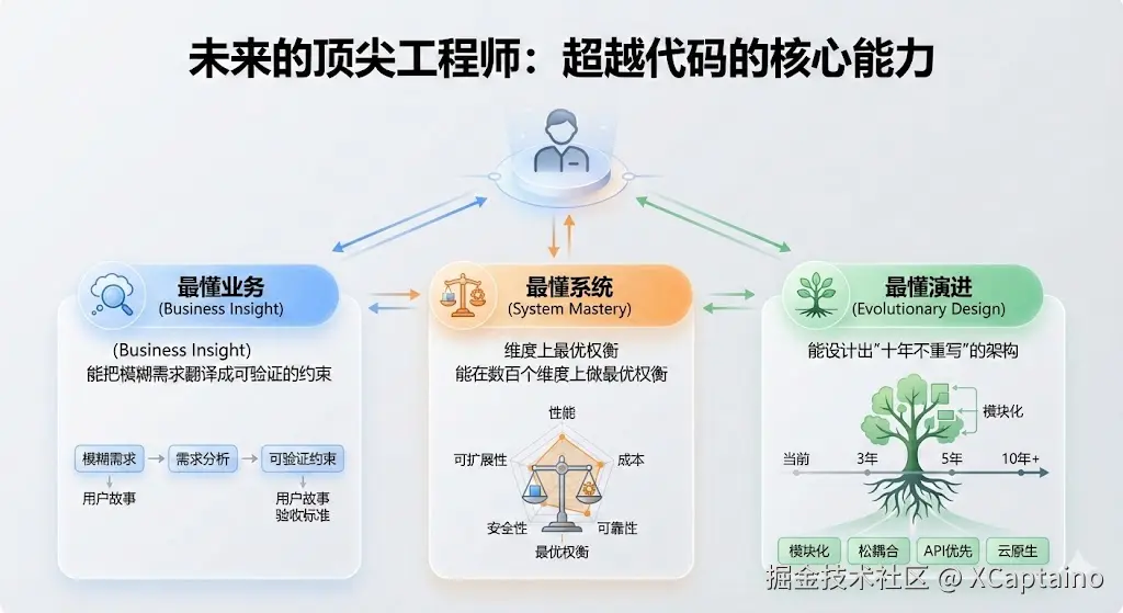 未来的顶尖工程师不是写最多代码的人,而是: