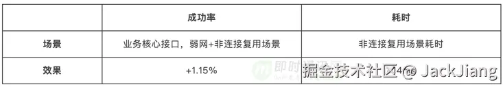 1)成功率:核心 feed 接口,在弱网+非连接复用场景下提升 1.15%;