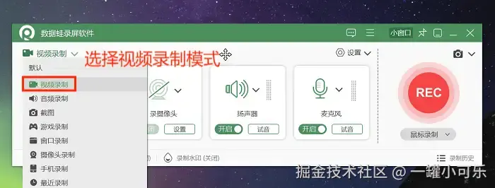 步骤1:打开数据 蛙录屏软件,按照个人需求选择录制模式,本文选择 “视频录制” 。
