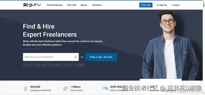 Guru是一个专注于远程工作和自由职业的平台,为程序员提供了大量高质量的远程项目机会,程序员想开启副业也可以考虑从它开始。它的特点在于严格的审核机制和专业的项目管理服务,确保项目的高质量完成。通过Guru,你可以找到来自全球各地的客户,与他们合作完成各种规模的软件开发项目。