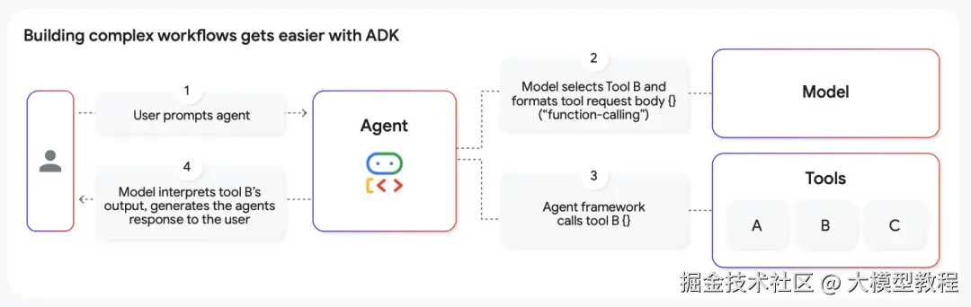 谷歌ADK(Agent Development Kit)是这份白皮书的技术核心。它不是简单的开发工具,而是一个完整的企业级AI Agent开发框架。ADK的设计哲学体现了谷歌对AI Agent技术发展方向的深度思考。