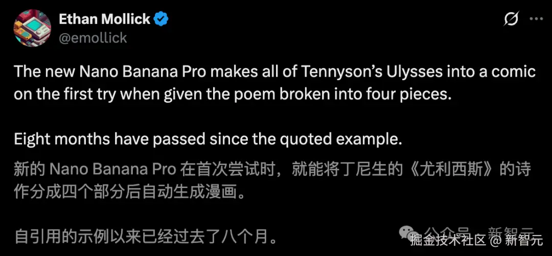 沃顿商学院教授 Ethan Mollick 实测,让 Nano Banana Pro 将「尤利西斯」诗作绘成漫画。