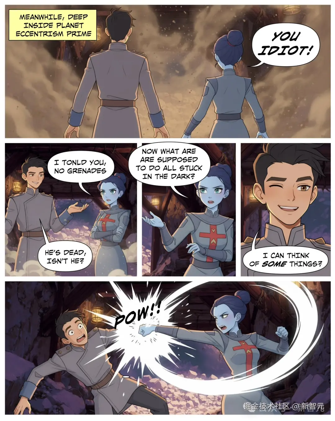 它需考验「叙事理解 + 角色一致性 + 连贯性」的综合表现,即便如此,Nano Banana Pro 也能 hold 住。