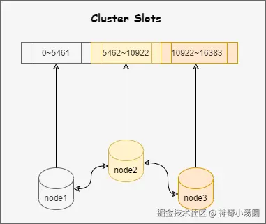 slot存储分布在多个节点,节点间数据共享,可动态调整数据分布; - 高可用性。部分节点不可用时,集群仍可用。集群模式能够实现自动故障转移(failover),节点之间通过
