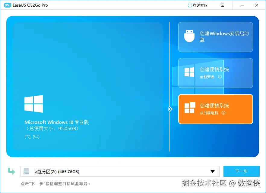 如果以上方法不能满足你的需求,还可以使用EaseUS OS2Go来实现,它的原理是在外部硬盘、USB闪存盘或Thunderbolt驱动器上安装并运行功能齐全的Windows。因此,一旦您创建了便携式Windows USB驱动器,您就可以随身携带并在任何计算机上使用它,这样你就可以使用Windows程序、畅玩Windows游戏啦。下面是具体的使用方法: