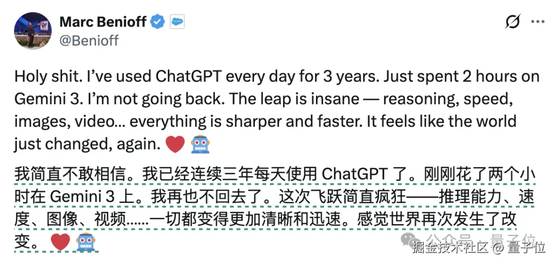 Salesforce 的 CEO Marc Benioff,就是快乐奔向 Gemini 的那一个: