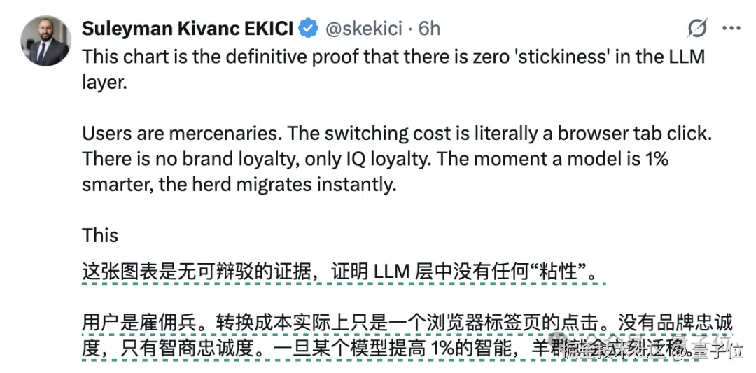 有人表示,大模型用户本身就没任何粘性可言啦,更高智能的模型已出现,大家就立马投入新的怀抱了。
