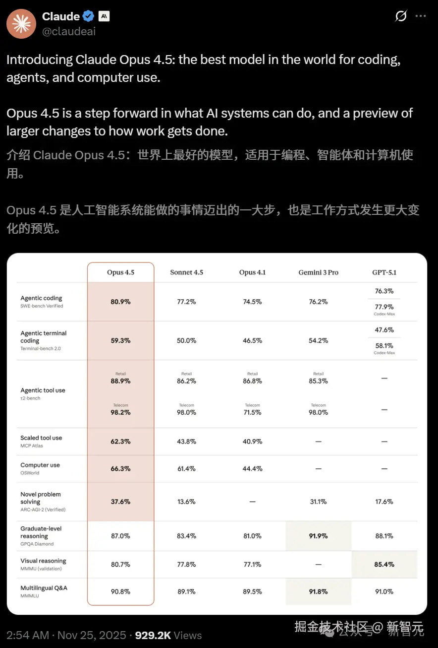 「【新智元导读】深夜,Claude Opus 4.5 重磅出世,编程实力暴击 Gemini 3 Pro、GPT-5.1。才一周的时间,AI 圈就完成了一次闭环式迭代。」
