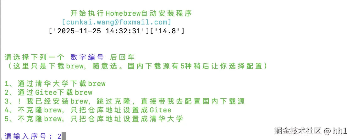 /bin/zsh -c "$(curl -fsSL https://gitee.com/cunkai/HomebrewCN/raw/master/Homebrew.sh)"
