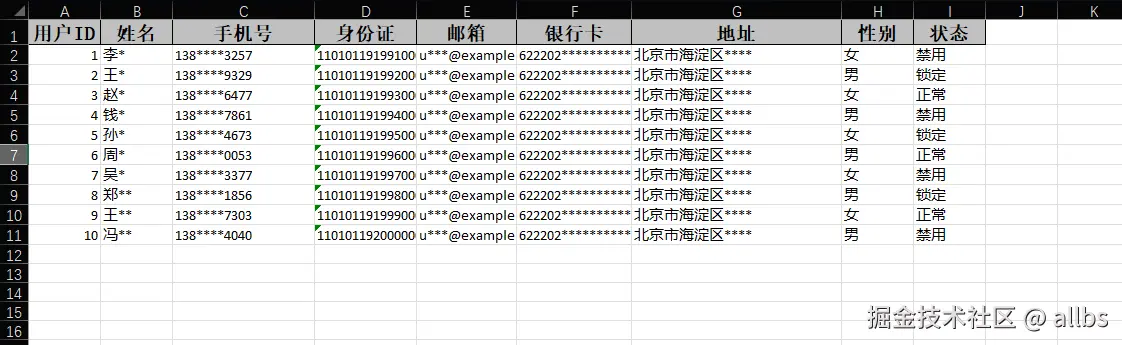 实际导出过程中肯定无法避免遇到需要数据脱敏的情况,如果是数据库层面脱敏过这边可以忽略,但是如果数据库层面没脱敏但是又需要在最后展示进行脱敏,就是这个功能的实际应用。