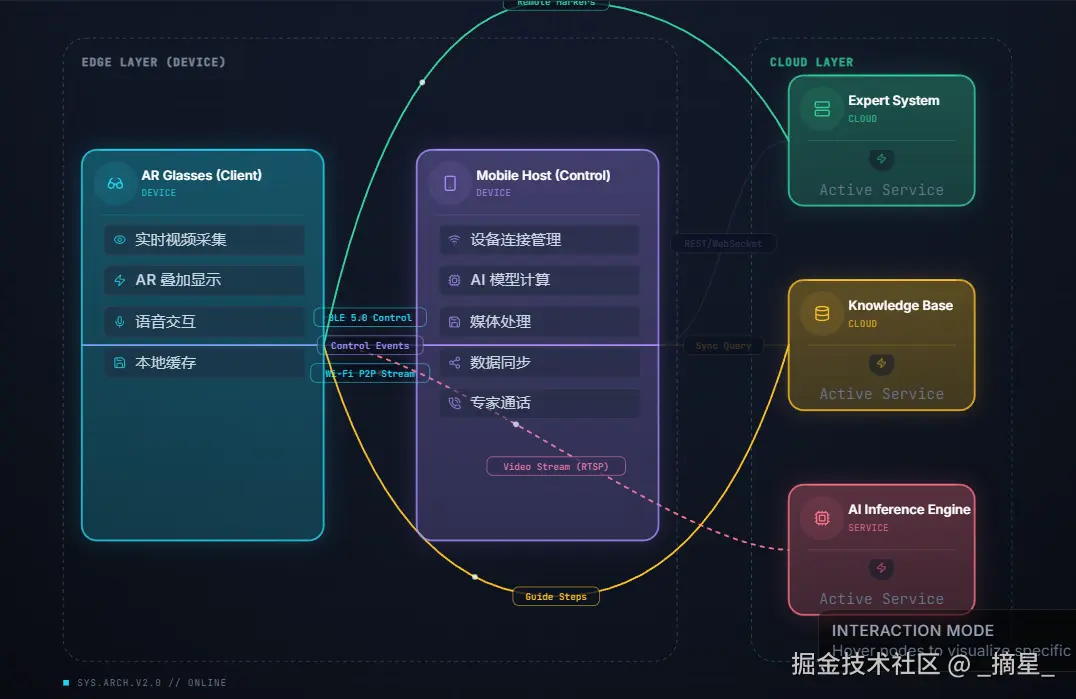 该系统创新性地结合Rokid眼镜的摄像头能力与手机端的网络传输能力,实现低于200ms延迟的远程协作。视频流经过工厂环境优化处理,增强金属表面与机械细节,使专家能够清晰识别问题点。标注数据使用差分编码,大幅减少传输量,确保在工业网络条件下仍能流畅交互。