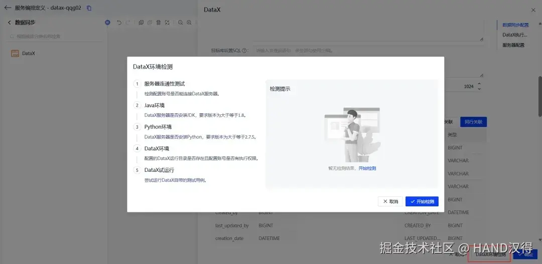 该功能提供一键式的自动化检查,在任务执行前对运行环境进行全面的健康检测,主动发现并排除环境隐患,有效避免任务因环境问题而失败,确保DataX数据同步任务的稳定性和可靠性。