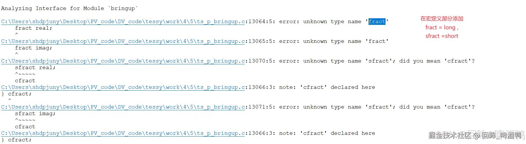5.error: unknown type name 'fract' error:unkown type name 'sfract';did you mean 'cfract'?