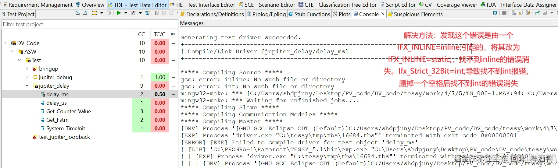 在使用Tessy进行单元测试时,测试遇到的问题可谓五花八门,分析代码时遇到的错误很多,输入测试用例执行后的错误更是多如牛毛。以下是一些我做单元测试中遇到的报错,和我试了好用的解决方案,供各位C友们参考