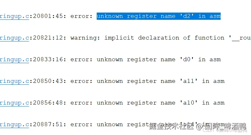 7. error: unkonwn register name 'd2' in asm