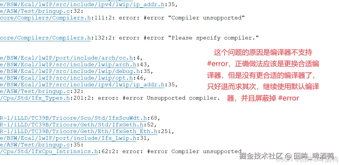 问题出现的原因时编译器不支持 #error .理论上应该替换合适的编译器和环境,但是由于Tessy没有更合适的编译器,只好退而求其次,不更换编译器,选择注释 代码中的#error部分,而后该错误消失。