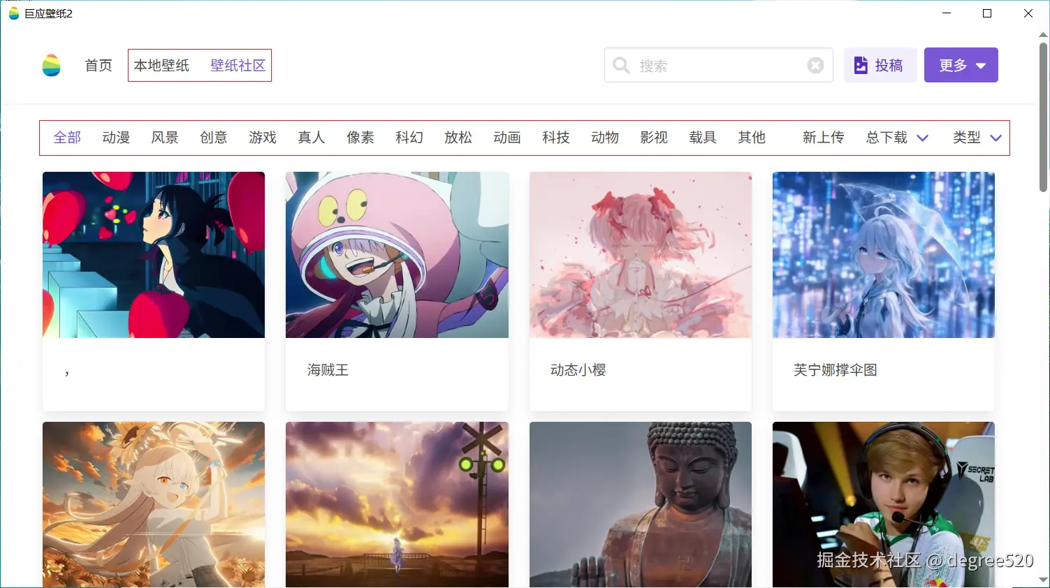 解压后双击 exe 直接运行,首页已分类:动漫、风景、创意、游戏、真人、科幻、动画等,一目了然,无广告。