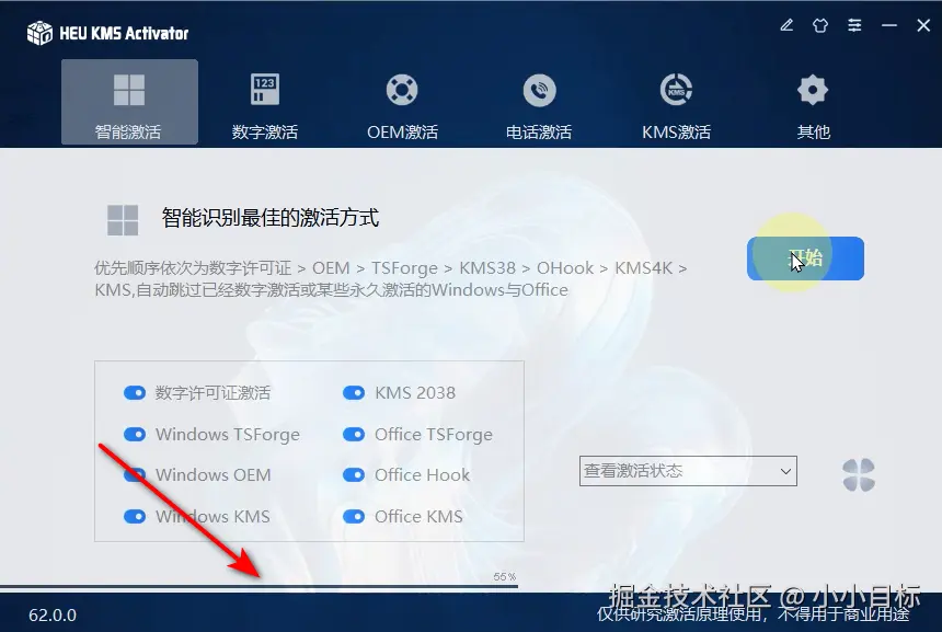 7、这里点击开始,等待下面进度条走完。