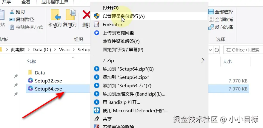 3、电脑是32的就装32版本,是64的就装64.点击其中一个setup.exe以管理员运行