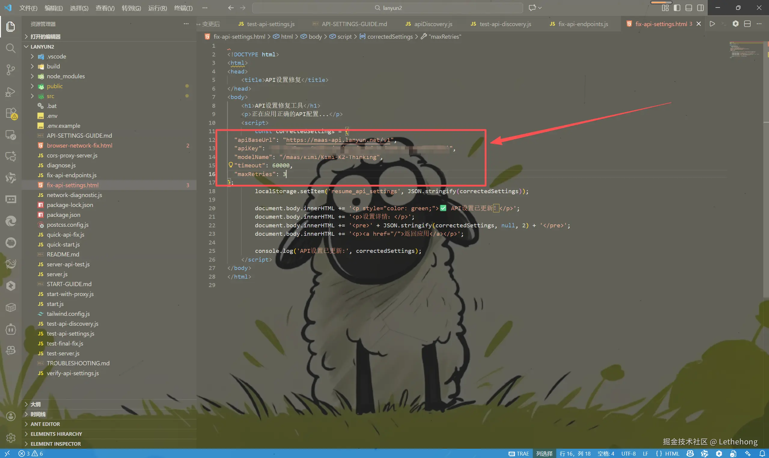 这里只是用于本地测试,所以写进去了,线上部署不建议将api放进代码内,懂得都懂